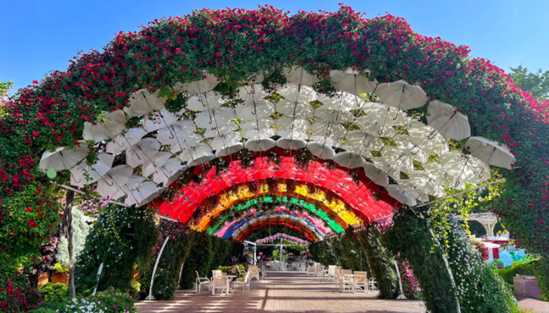 of Dubai Miracle Garden’s most colorful and playful attractions. A canopy of